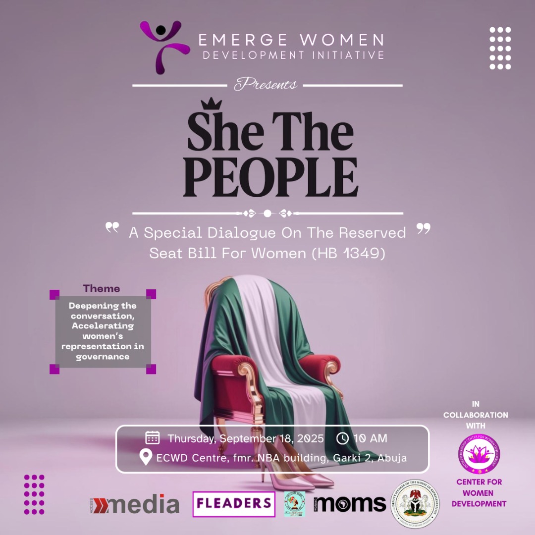 Emerge Women Development Initiative is set to host a high-level dialogue on the Reserved Seats for Women Bill as part of its ongoing efforts to strengthen women’s political participation in Nigeria.
